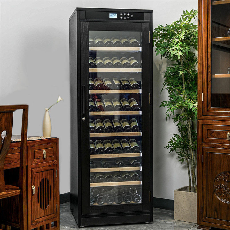 Каждый блок выполнен из черного дерева высокого качества, что гарантирует долговечность и долговечность.от гладких краев древесины до бесшовной интеграции компонентов контроля температурыЭто сочетание качественных материалов и изящного мастерства делает наш винный холодильник знаменитым, который выдержит испытание временем.